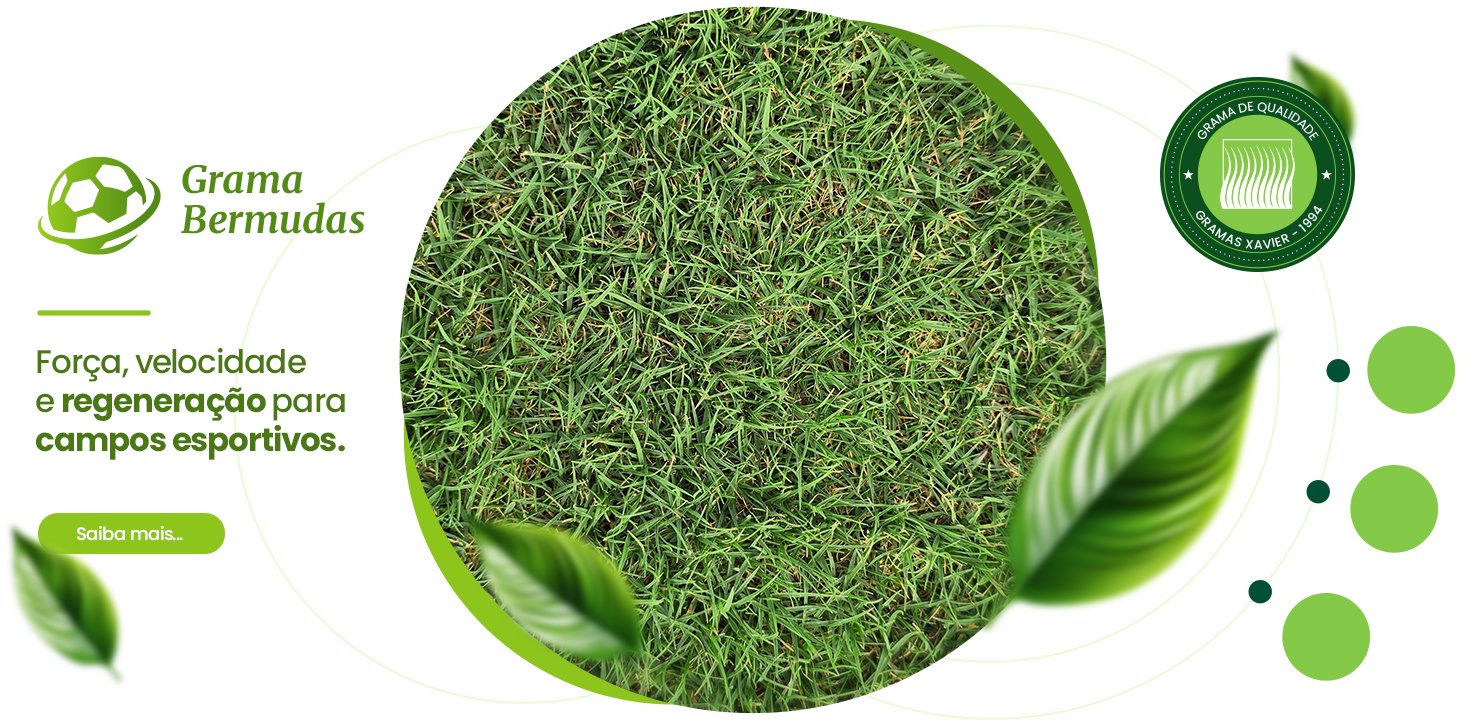 Ideal para áreas com muito pisoteio, a Grama Bermudas é resistente, densa e se regenera com rapidez.